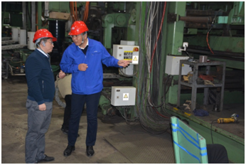 ?近期,山東勝利承接了河南省天然氣洛陽伊川——鄭州薛店項目(一期)管線鋼管生產(chǎn)任務,值此鋼管生產(chǎn)全面展開之際,2023年2月9日,河南省天然氣管網(wǎng)公司企業(yè)管理中心副總經(jīng)理上官景浩等一行9人到山東勝利考察調研。公司總經(jīng)理趙增強、副總經(jīng)理張圣光、于國光、李國松、安全總監(jiān)石晨鐳及相關業(yè)務部門負責人與客人進行了深入誠摯的座談。趙總首先代表公司熱烈歡迎河南省天然氣管網(wǎng)公司領導到山東勝利考察調研,并向河南客人介紹了我公司50年的發(fā)展歷程、公司現(xiàn)狀、生產(chǎn)設備、人員情況、公司參與國內外重大管線工程生產(chǎn)保供業(yè)績以及未來發(fā)展規(guī)劃等情況,希望河南省天然氣管網(wǎng)公司各位領導通過本次實地考察,進一步了解山東勝利的經(jīng)營宗旨、銷售理念、生產(chǎn)保供能力及發(fā)展前景,希望雙方通過洛陽伊川——鄭州薛店項目(一期)管線生產(chǎn)合作,在省域、城市天然氣管網(wǎng)建設領域進行更加深入廣泛的合作,助力河南省天然氣管網(wǎng)發(fā)展建設。河南省天然氣管網(wǎng)公司企業(yè)管理中心副總經(jīng)理上官景浩對我公司50年奮斗取得的優(yōu)良業(yè)績表示贊賞,感謝公司的熱情接待,他代表河南天然氣管網(wǎng)公司對山東勝利2022年中標生產(chǎn)國家管網(wǎng)工程項目表示祝賀,同時也介紹了河南天然氣管網(wǎng)公司的相關情況,對洛陽伊川——鄭州薛店項目(一期)管線鋼管生產(chǎn)合作及雙方今后的進一步合作充滿信心和期待,歡迎山東勝利積極廣泛地參與河南省天然氣管網(wǎng)建設,預祝洛陽伊川——鄭州薛店項目(一期)管線鋼管生產(chǎn)順利成功。隨后,趙總等公司領導陪同客人參觀了公司展廳、實驗室、三分廠、預精焊分廠、防腐保溫分廠1#線。預精焊分廠機組集中控制系統(tǒng)、成品自動測量檢驗機器人等性能先進的生產(chǎn)檢驗設備給客人留下了深刻印象。